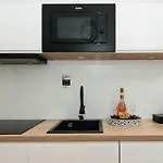 Pełnowymiarowa kuchnia posiada piekarnik i zmywarkę do naczyń do komfortowego gotowania w obiekcie. Prawie 5 min pieszo do przystanku autobusowego Targ Chlebowy 01.
